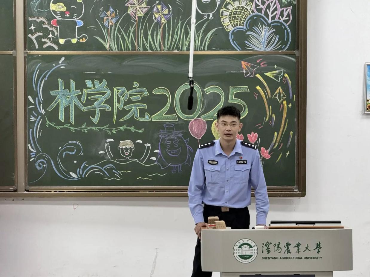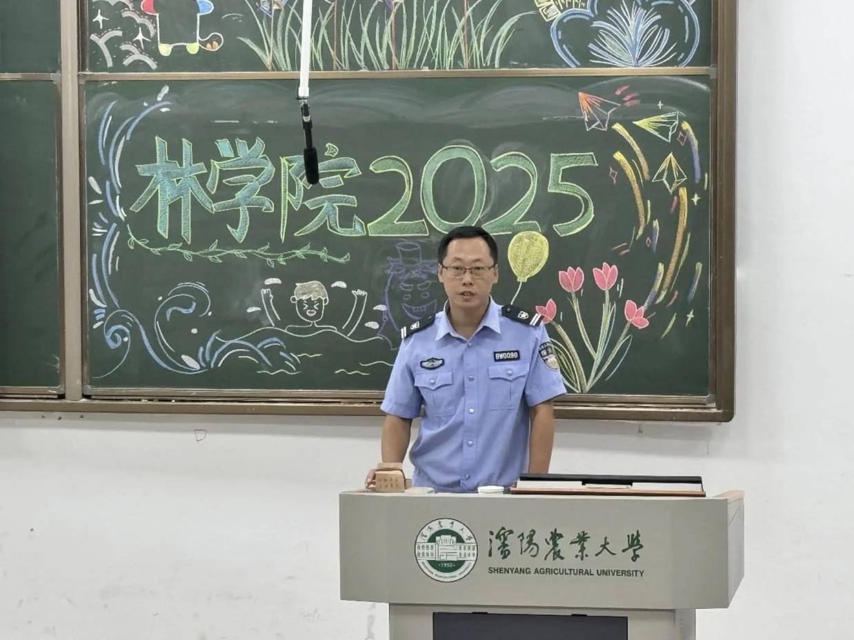 为提升学生安全意识,全面筑牢校园安全防线,9月17日14点,林学院2025级本科生安全教育大会在第一教学楼南区106召开。会议邀请校公安处副处长马希斌老师、东陵派出所副所长赵悦桐担任主讲嘉宾。林学院党委副书记、2025级本科生辅导员杜杰老师、团委书记胡凯老师出席会议,2025级全体本科生参会
